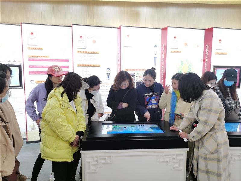 隨后,“娘子軍”們前往宣城宛陵湖法治文化館參觀。大家認(rèn)真聆聽(tīng)講解員的講解,依次參觀了“尊法學(xué)法”“守法用法”“普法路上”三個(gè)展區(qū),現(xiàn)場(chǎng)學(xué)習(xí)了法治文化,觀看了宣城市普法宣傳片和法治故事短片,體驗(yàn)了法治模擬場(chǎng)景。通過(guò)參觀學(xué)習(xí),進(jìn)一步增強(qiáng)了她們尊法學(xué)法守法用法意識(shí),將法治觀念融入今后工作和生活中,做到廉潔從業(yè),依法履職。