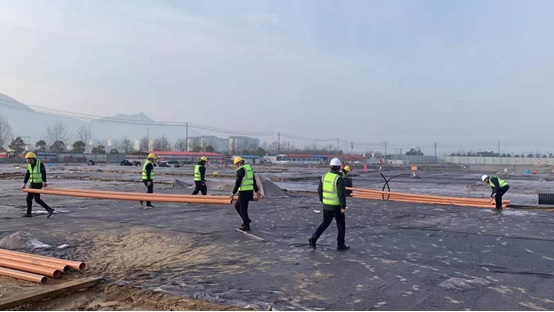 年三十,混凝土初凝,均在養(yǎng)護(hù)期內(nèi),吊裝設(shè)備雖不能進(jìn)場,但項目建設(shè)進(jìn)度絲毫沒有懈怠。參建各方組織力量,搶抓能夠施工的地方,項目管理人員放棄節(jié)假日奔赴現(xiàn)場指導(dǎo)施工,水電班組全員到崗鋪設(shè)水電管道,為下一步準(zhǔn)備區(qū)、緩沖區(qū)的板房安裝及隔離區(qū)的打包房安裝做好充足的準(zhǔn)備工作。